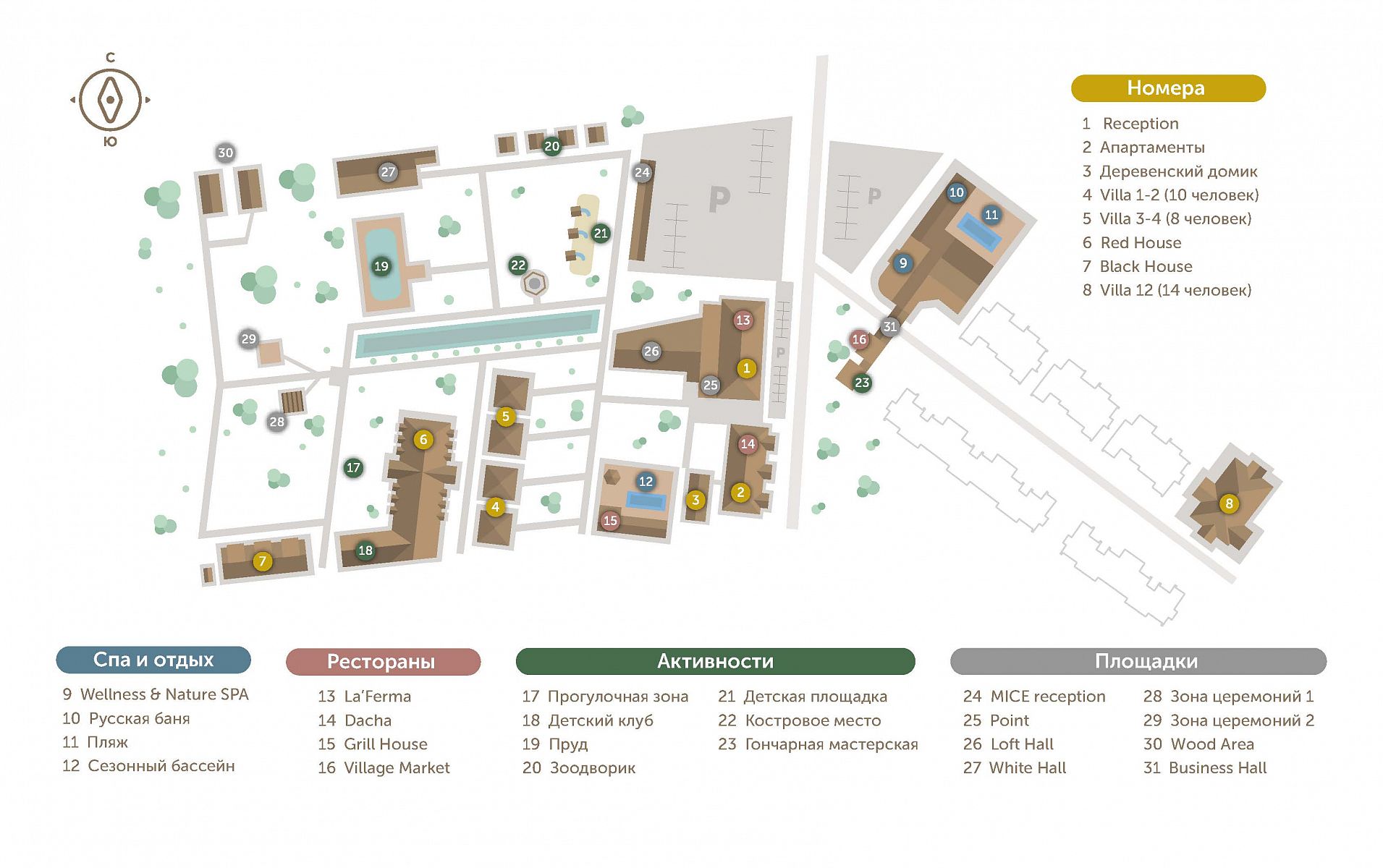- 48 номеров, 4 коттеджа, 1 вилла
